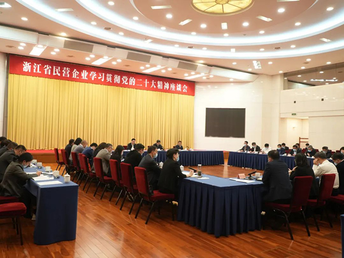 10月26日下午,浙江省民營企業(yè)學(xué)習(xí)貫徹黨的二十大精神座談會在省人民大會堂召開,省委常委、統(tǒng)戰(zhàn)部部長邱啟文,省工商聯(lián)主席、省商會會長、富通集團(tuán)有限公司董事長王健沂,省委統(tǒng)戰(zhàn)部副部長、省工商聯(lián)黨組書記徐國龍,省工商聯(lián)黨組副書記、副主席蔡曉春,出席本次會議。